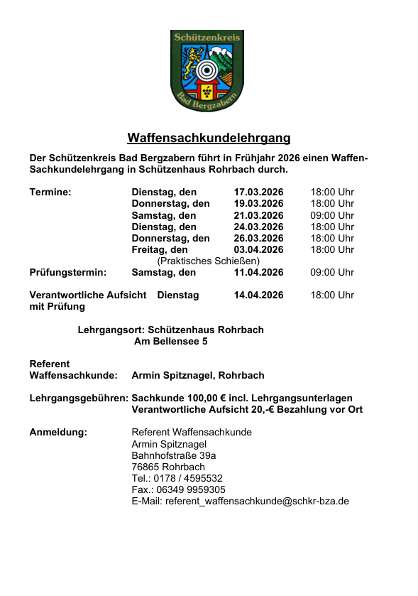 | Sonntag | 22.02.2026 | Kreismeisterschaft auf der Anlage des SV Rohrbach in der Disziplin KK Sportpistole und KK 3x20 | |